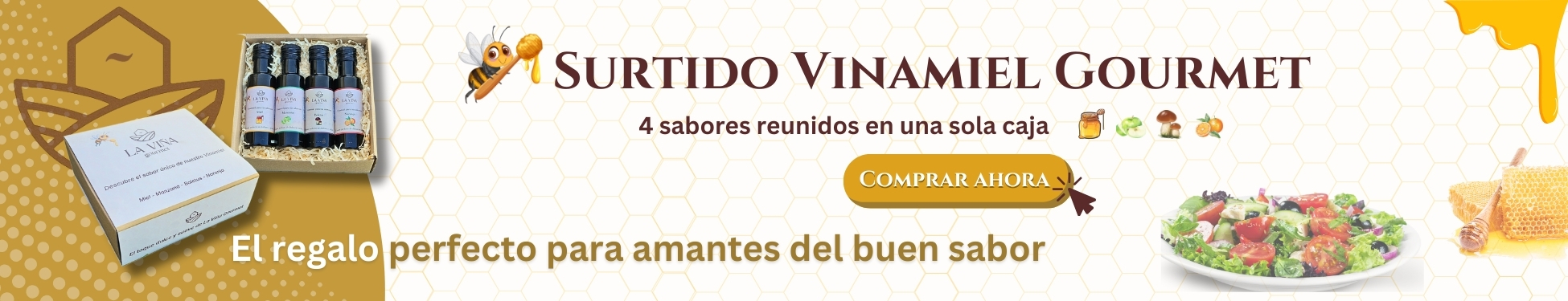 Vinamiel es un condimento único elaborado con miel pura y fermentación natural, perfecto para aliños, vinagretas, carnes, ensaladas o incluso postres.